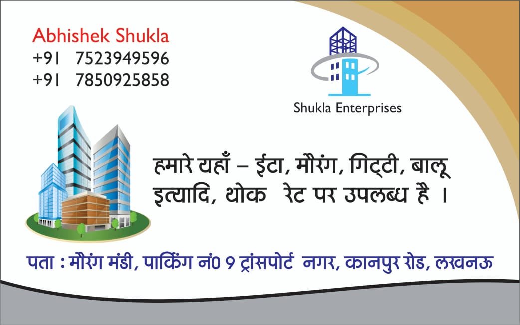 🏗️ लखनऊ में बिल्डिंग मटेरियल और प्रॉपर्टी से जुड़ी हर ज़रूरत का वन-स्टॉप सॉल्यूशन 🏡 ✅ बिल्डिंग मटेरियल थोक रेट पर – सीधा आपकी साइट पर डिलीवरी ✅ सिविल वर्क सर्विसेज – क्वालिटी और टाइम पर काम की गारंटी ✅ प्रॉपर्टी डीलिंग – प्लॉट, मकान, दुकान, गोदाम की खरीद-बिक्री और किराया ✅ पेस्ट कंट्रोल सेवाएं – आपके घर और ऑफिस के लिए सुरक्षित समाधान 📞 अधिक जानकारी और बुकिंग के लिए तुरंत संपर्क करें: 0522-3192484 | 7523949596 | 7850925858 | 9415001428 👉 लखनऊ में बिल्डिंग मटेरियल + प्रॉपर्टी + सिविल वर्क + पेस्ट कंट्रोल – सब कुछ एक ही जगह Maurang/Morang River Sand Balu Sand Gitti Crushed Stone / Stone Aggregate or Gravel Eeta/Inta Bricks eta ita Best quality construction materials Lucknow rate Eta Ita Maurang Gitti price LUCKNOW